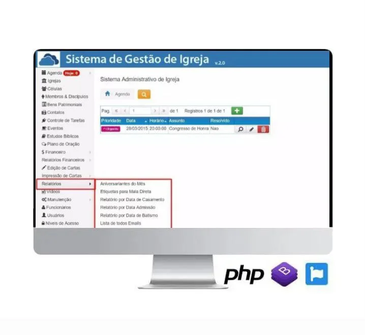 – Cadastro, Consulta e Relatório dos Bens patrimoniais das Igrejas;